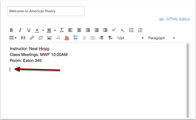 You can use the Rich Content Editor to record video and audio media. You can record media for any length of time, but shorter media recordings are recommended. If your media is longer than 15 minutes, you may want to consider recording your webcam using Kaltura Capture and saving the video file to your My Media video storage space.