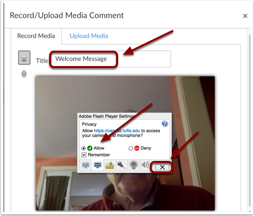 The Upload/Record Media tool in the Rich Content Editor does not support captions for accessibility. If possible, we recommend using My Media/Media Gallery to record and upload video, which will be automatically captioned in accordance with the Tufts captioning policy.