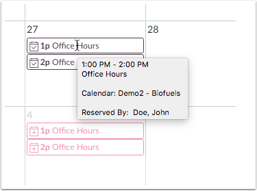 Note: Holding your cursor over the appointment entry will display a short version of the appointment details