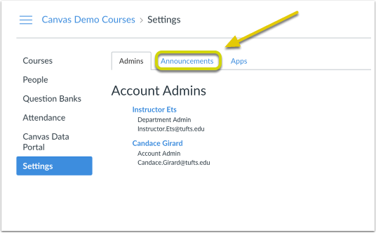 Click the Announcements tab