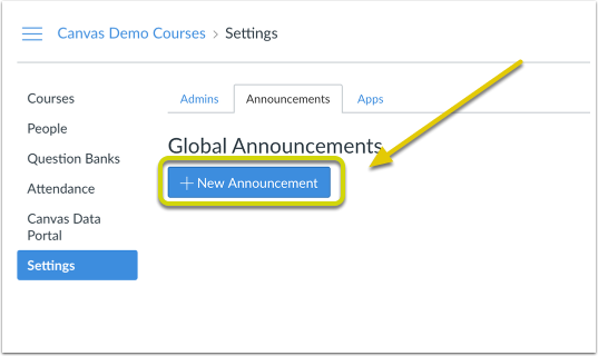 [2] In the Announcement type field, set the Announcement type (warning, error, information, question, or calendar). Refer to the Canvas Global Announcement Types to see examples.