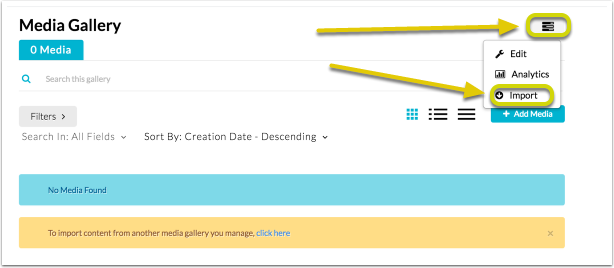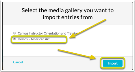 This displays a dialogue box containing the name of the course sites that you have permission to import Media Gallery videos from.