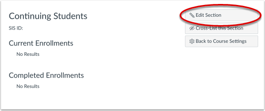 Note: If the overall end date for your course has already passed, you may not be able to add students to the new section you created. Go to your course Settings and temporarily remove the course end date (see End of the Semester options for Instructors). After you have successfully enrolled students in your new section, you can fill in the course end date again.