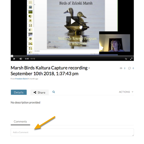 When viewing a media item, type your comment into the "Add a comment" box below the viewer window